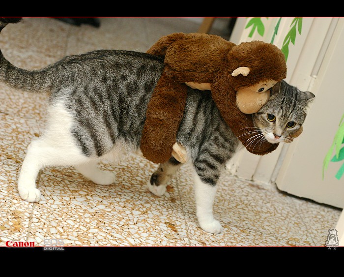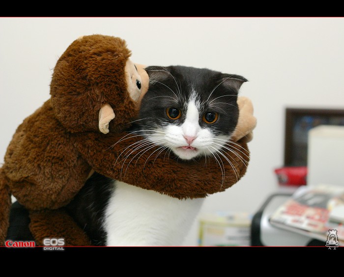 從同事手中得回來的馬騮公仔. 得物就梗係善用喇...